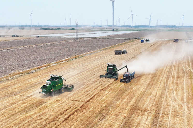 2025年5月29日,盐城射阳县江苏农垦临海农场顺泰生产区麦浪涌动,大型联合收割机轰鸣作业,率先拉开当地夏收小麦序幕。近年来,农场党委以垦地合作推动发展,通过技术赋能与盐碱地改良,昔日盐碱地蜕变为“吨粮田”,为乡村振兴打造国有农业新样板。