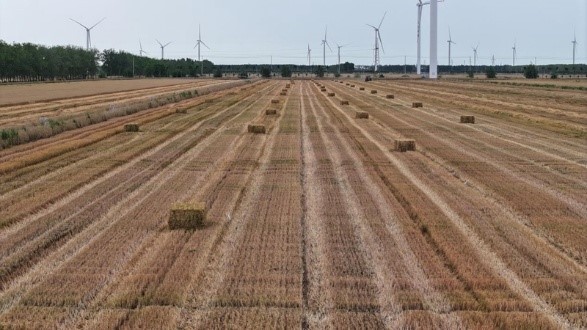风吹麦浪,麦穗金黄。眼下正值夏收时节,江苏省黄海农场秸秆打捆离田现场一派繁忙景象:成堆的秸秆在一系列高效作业流程下,正经历着从“废弃物”到“增收法宝”的神奇转变。