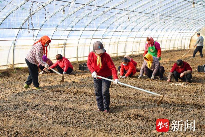 清晨,第一缕阳光穿透薄雾洒向连云港市海州区岗埠农场高效农业示范园,28号温室大棚内暖意融融,近20名工人分工协作,锄沟、摆种球、栽种、培土……动作娴熟、衔接紧密,一派热火朝天的劳作景象,为今冬海州“美丽经济”续写着增收新篇。