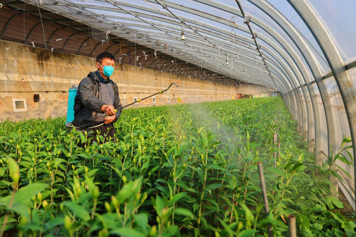 此时,工作人员杨维祥正专注地进行着百合花苗的杀菌消毒作业。他身背自动喷雾器,仔细地为每一行花苗进行护理,不放过任何一个细节。“现在气温低,必须加强消毒作业。”杨维祥在这里工作多年,对百合花的种植管护有着丰富的经验,他深知每一个环节的重要性,只有精心照料,才能让这些百合花茁壮成长。