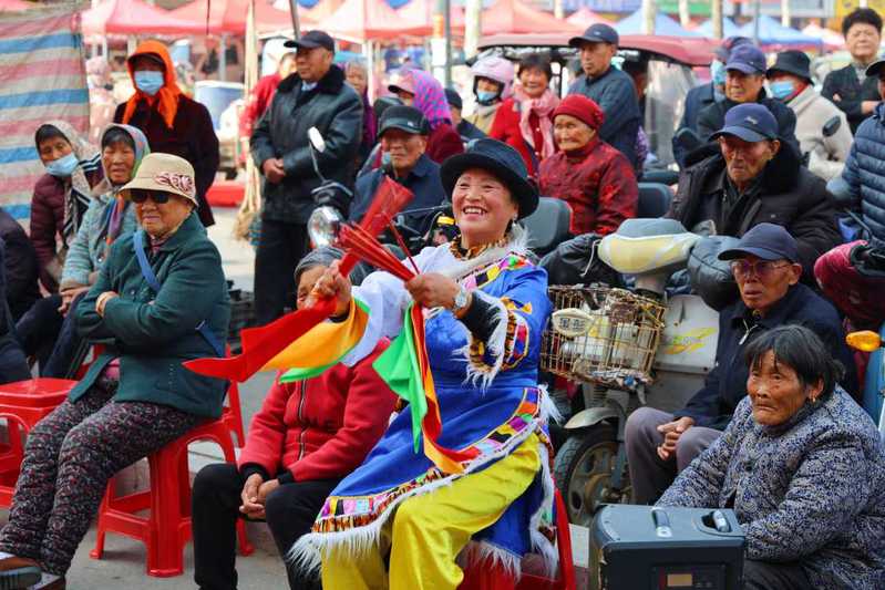 3月26日,江苏省连云港市海州区江苏农垦岗埠农场乡村大集,民俗表演吸引路人驻足。