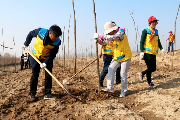 3月的新洋,春光旖旎,生机焕发。12日下午,150名志愿者分别集结新北生产区6大队和7大队防风林带,仅40分钟就植下重阳木和水杉共3000棵,为“绿色生态新洋”描绘出浓墨重彩的一笔。