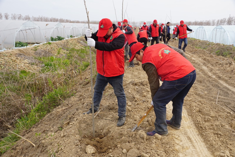在党支部书记的带领下,支部党员们分工合作、配合默契,他们拿起工具,挥锹铲土,扶苗、培土、踩实,每一个动作都透着十足的干劲,植树现场热火朝天,气氛活跃。经过近一个小时紧张忙碌的劳动,共种植树苗1100余株,为明媚春光再添一道动人的风景,营造了“爱绿、植绿、护绿”的生态文化氛围。