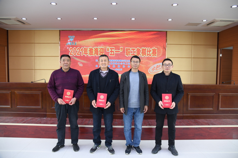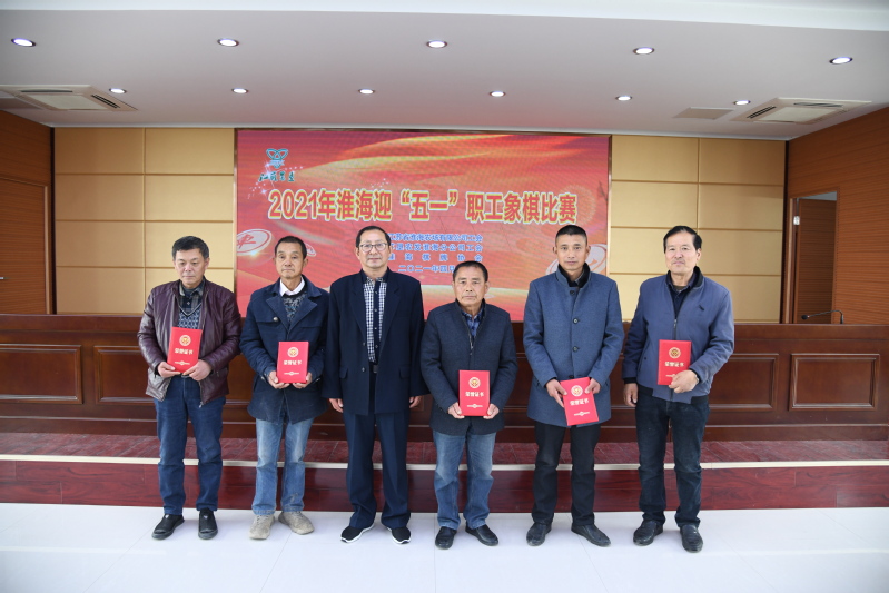 4月20日,是淮海农场建场周年纪念日。在这个特殊的日子里,为迎接“五一”国际劳动节的到来,淮海农场有限公司工会、苏垦农发淮海分公司工会主办,淮海棋牌协会承办的2021年淮海“迎五一”象棋比赛在农场公司机关四楼大会议室拉开帷幕,来自淮海15支代表队33名选手参加比赛,整个比赛实行淘汰制,经过6轮逐杀,来自建安公司的谷春、学校的王兴荣同志获得象棋比赛一等奖;来自农场社区的张浩虎、学校的顾正海、农场社区的吴建龙获得比赛的第二名;来自五分场社区的沈阳、六分场社区的张建飞、五分场社区的王立才、学校的张瑞华、建安公司的薛海喜等五名同志获得了第三名。农场公司工会主席戴学林和农场公司及分公司工会负责人等分别为获得一二三等奖的选手颁奖并合影。