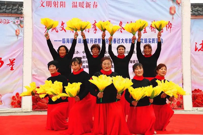 1月19日下午,虽然户外天气阴沉,寒气逼人,但在江苏省射阳县临海镇五岸社区文化广场大舞台上,却呈现出暖意浓浓的态势,在由射阳县临海镇党委、镇政府和射阳县文化广电和旅游局主办,镇新时代文明实践所、综合文化站、五岸社区承办的冬训课堂开讲暨民俗闹春过大年新时代文明实践活动会上,却出现了两支由淮海农场文艺志愿者组成的表演队伍,让乡村党员冬训课堂呈现出场乡文艺共建,共同唱响党建品牌的合作之旅。
