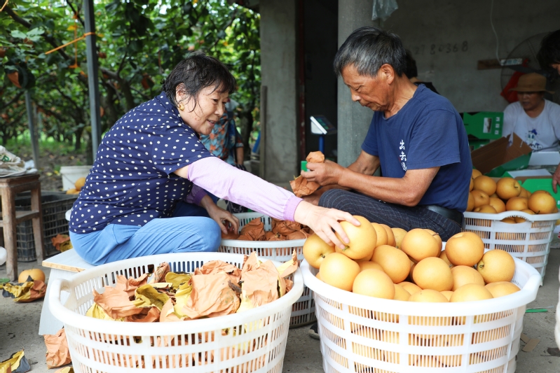 近日,江心沙农场“明星水果”秋月梨、阳光玫瑰等火爆上市,迎来海量订单,仅两日就售出2000箱,20000余斤。据介绍,此次订单主要来自周边市场,还没开园就咨询电话不断,其中往年老顾客占八成,回头率颇高。图为批量采摘、包装,和零售场景。