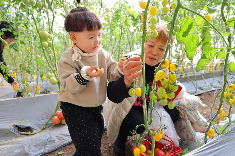新春佳节之际,在江苏省岗埠农场的高效农业示范园,游客们利用周末假期等时机,组团走进温室采摘园,挑选品尝不同品种的番茄,与家人朋友享受冬日乡村采摘的乐趣。