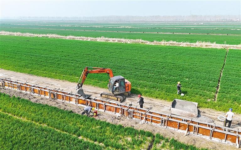 四月二日,施工人员在江苏省连云港市岗埠农场开展水利设施建设,为粮食稳产增产打好基础。徐 卫摄(中经视觉)