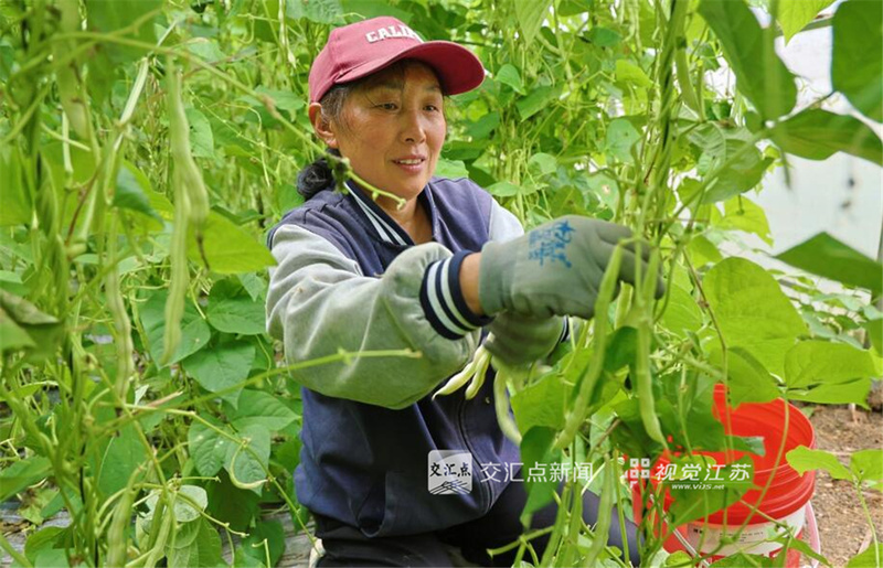 4月20日,连云港市海州区,在江苏农垦岗埠农场的果蔬种植大棚里,菜农们在藤蔓之中穿梭,挑选采摘成熟的四季豆,准备供应市场销售。连日来,当地抢抓农时,加紧做好蔬菜、瓜果的管护工作,适时开展采收,确保群众“菜篮子”“果盘子”市场供应有序。徐卫 窦双双 摄 视觉江苏网供图