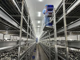 宝应湖:工厂化双孢菇首茬采收