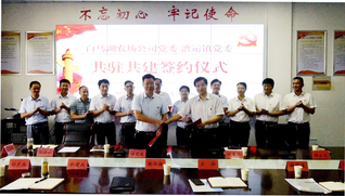 7月22日上午,白马湖农场有限公司党委和淮安市淮安区漕运镇党委在漕运镇举行“共驻共建”签约仪式,以“党建引领促发展、共享共赢创和谐”为主题,以党员教育共抓、干部人才共育、科学发展共赢、党建资源共享为目标,正式启动共驻共建工作。白马湖农场有限公司领导姚春华、韩正光、王林、韩跃武、沈会生、何善栋,漕运镇领导汤昌波、张洪永、谢仕海、孙建兵、孙夕兵、张翔燕、武顺洋及漕运镇相关部门工作人员等出席签约仪式,签约仪式由漕运镇党委副书记、镇长张洪永主持。签约仪式上,白马湖农场公司党委书记姚春华首先致辞,指出,开展共驻共建、互联互动,其目的是通过党建工作相互融合,构建“组织共建、资源共享、发展共商、社区共治”的工作格局。既是落实省委组织部和省国资委党委相关文件精神的具体要求,也是江苏农垦集团公司党委年度党建工作目标的重要内容;既是新时期基层党建工作联创的一次有益探索,也是践行基层党建三年行动计划的重要路径;既是履行国企社会责任、建立新型场地关系的重要环节,也是推动场地党组织主动融入区域化党建新模式的关键;既是双方通过交流互动、优势互补、互学互鉴,实现资源共享、共同促进、共同提高的现实需要,也是共推新时期