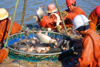 12月25日,江苏省连云港市海州区的江苏农垦岗埠农场,水产工人分工协作,加紧拉网捕捞鲤鱼、花鲢、白鲢等各种鲜鱼,准备供应云南昆明、山东济宁等多地市场。随着2026年元旦临近,水产市场需求量逐渐增大,当地积极做好鲜鱼捕捞销售工作,切实满足节日市场需求。