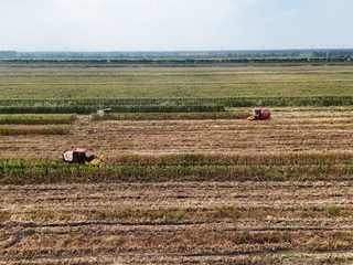 2025年10月10日,苏垦农发岗埠分公司正在抢收水稻。秋收时节,天气复杂多变,给秋收工作带来一定困难,岗埠分公司按照“成熟一块、收获一块”的原则,组织200多台收运机械,集中力量加紧进行机械抢收作业,确保成熟玉米、水稻等秋粮及时归仓。