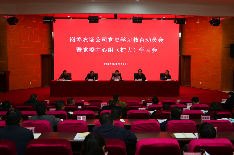 3月12日下午,岗埠农场公司在在职工之家大会堂召开党史学习教育动员会在召开。农场公司党委书记王信学主持会议并作动员讲话,传达学习集团公司党委书记、董事长魏红军在江苏农垦党史学习教育动员会上的讲话,党委副书记张连思作岗埠农场公司党史学习教育工作部署。会议深入学习贯彻习近平总书记在党史学习教育动员大会上的重要讲话精神,认真落实集团公司党史学习教育动员会的部署要求,对农场公司开展党史学习教育进行动员部署, 动员农场公司各级党组织和广大党员牢记初心使命、矢志艰苦奋斗,为谱写新时代岗埠高质量发展新篇章汇聚磅礴力量,以优异成绩迎接建党100周年。