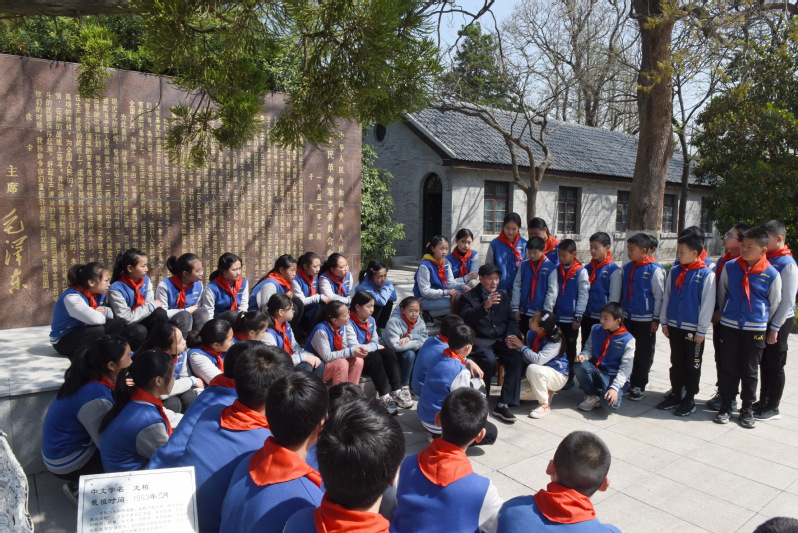 “1952年4月,我们农建四师的万余官兵来淮海农场屯垦戍边的路途中,即便是下雨天也从不扰民,夜晚老百姓的屋檐下、草堆旁官兵是席地而睡,让老百姓深受感动。”4月14日上午,在农建四师大院内的毛泽东发布的“农业建设、生产待命”命令碑文前,89岁的原农建四师战士胡福生正在给射阳县淮海小学六年级的学生讲党史场史,“‘不与民争地、不与民争利’列入了农场的建场方针,我们共产党人是千方百计地保护农民群众的利益。”