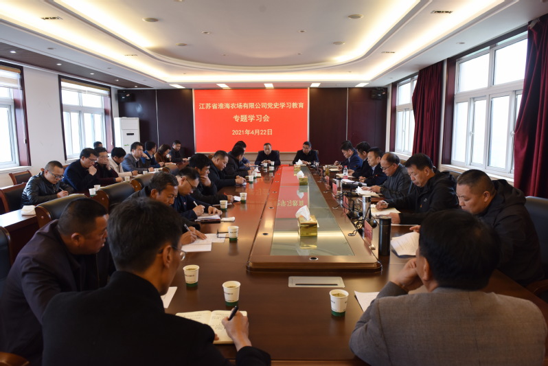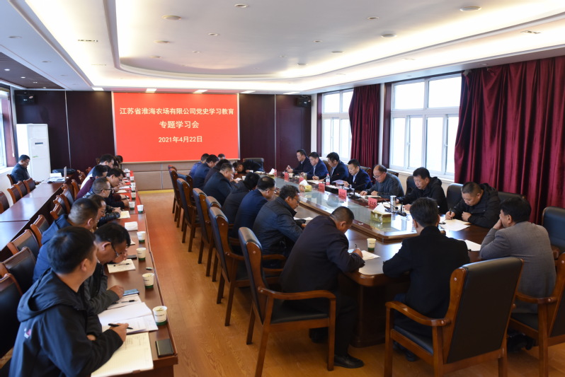 4月22日下午,淮海农场有限公司党委举行党史学习教育专题学习会,农场公司党委书记单祥忠主持会议并讲话,党委副书记王灿明领学习近平《论中国共产党历史》相关章节篇目。淮海领导班子成员、财务总监,各党总支、直属支部书记,农场机关、二三产单位和驻场单位负责人参加会议。
