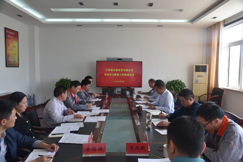 5月20日下午,苏垦麦芽公司召开党史学习教育工作推进会,党委书记、董事长、总经理郭世平出席会议并作要求,纪委书记李海峰主持会议,公司领导班子成员、各支部书记、学教办成员参加会议。
