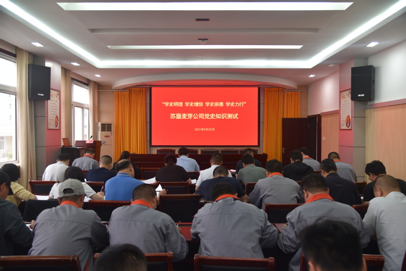 为认真学习贯彻习近平总书记在党史学习教育动员大会上的讲话精神,持续深化爱国、爱党教育,引导全体党员进一步坚定理想信念,传承红色基因,激发干事热情,5月25日下午,苏垦麦芽公司组织公司全体党员进行党史学习教育专题测试。