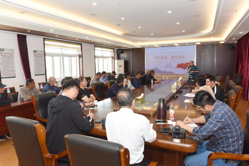 5月24日下午,淮海农场有限公司党委副书记王灿明在分公司机关五楼,给来自三四分场社区党总支的党员干部,以“开天辟地 建党伟业”为题,“从人力资本角度讲述中国共产党为什么能”“从社会资本角度讲述中国共产党为什么能”“从心理资本角度讲述中国共产党为什么能”的三个角度,以PPT图文并茂直观的形式,通过用丰富的事例、朴实的语言、重大历史事件和重要人物的关联,全景式地展开了中国共产党百年征程中艰苦卓绝的奋斗历程,让参会的同志受到了一次生动的党史学习教育。王灿明在党课学习教育过程中,要求大家要把党的光辉历史学习好、总结好,把党的成功经验传承好、发扬好,并结合各自的工作实际,从党的百年伟大奋斗历程中赓续精神血脉,迎难而上破解难题,在“十四五”开好局、起好步,推动淮海高质量发展。