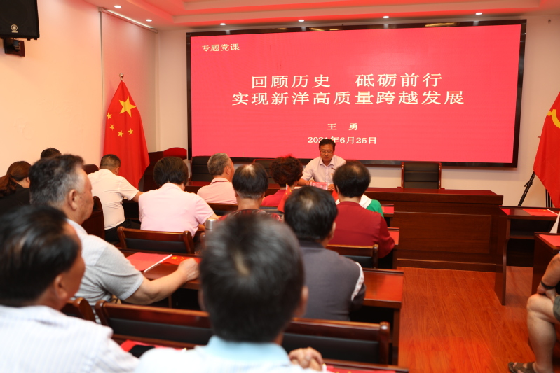 6月25日,新洋老干部党总支召开党员大会,纪委书记王勇为老党员上了一节党史学习教育专题党课。新洋机关一支部全体党员参加了此次活动。
