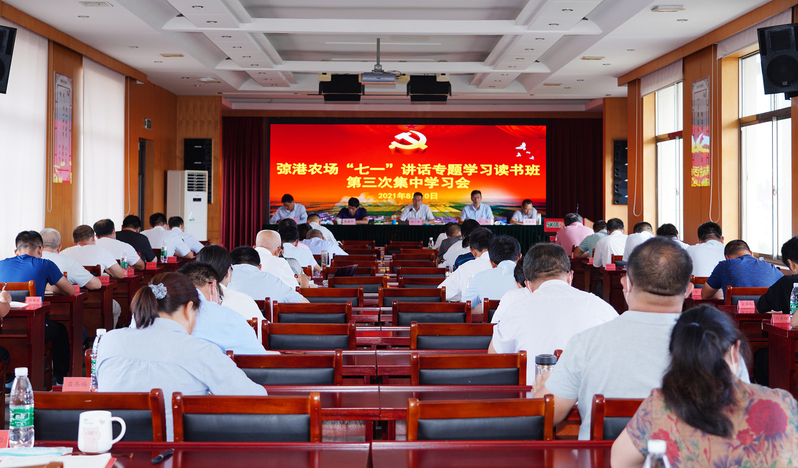 为学习贯彻落实习近平总书记“七一”重要讲话精神,强化党员干部政治理论武装,推动党史学习教育走深走实,8月6日至10日,弶港农场有限公司举办学习习近平总书记“七一”重要讲话精神专题读书班。公司领导班子、中层副职及以上党员、各基层党支部书记,党史学习教育办公室成员以集中自学、专题辅导、研讨交流为主要形式进行了为期三天的集中学习。