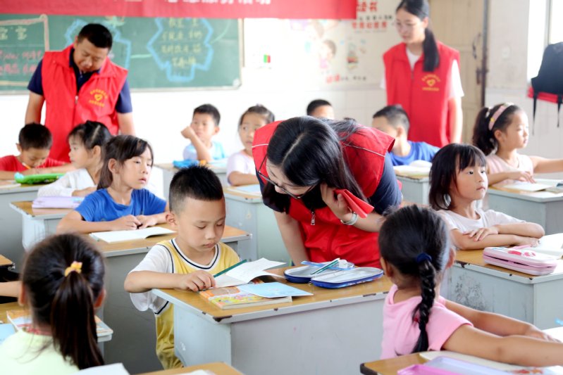 小课堂上,气氛火热。志愿者们分工合作,积极与孩子们进行互动交流,带领他们开展各种活动,大家都沉寂在欢声笑语中。孩子们都十分喜欢志愿者们,他们说:“这些大哥哥和大姐姐都很棒,给我们讲解不会的题,让我们有了更深的认识和理解。”志愿者们也在志愿服务过程中感受到了快乐和满足。