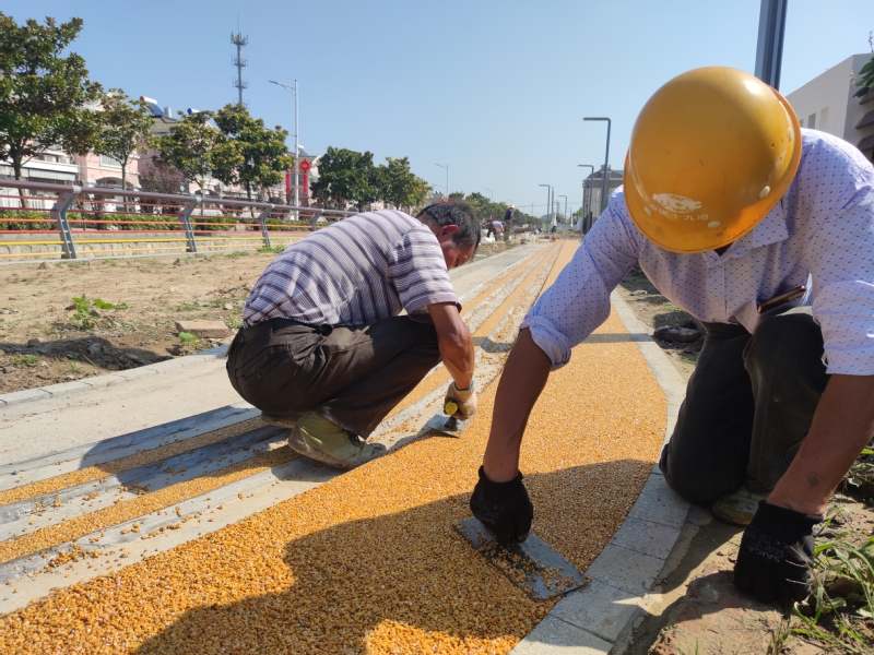 随着体育健康文化深入人心,越来越多的职工居民十分关注农场公司党委这一惠民的建设项目,纷纷参与到农场公司打造的健身运动平台行列中来。而健身步道作为农场公司党委为民办实事的项目工程,此建设任务不仅满足广大职工锻炼的需求,更是提升了美丽农场的创建水平。图为健身步道项目工程施工人员正在进行健身彩色步道的铺设工作。