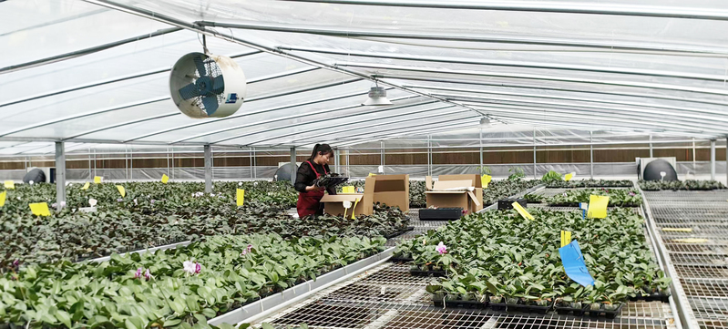 近日,云台农场蝴蝶兰种植基地内,工人们正忙着分拣、打包蝴蝶兰花苗,抢抓市场销售旺季。