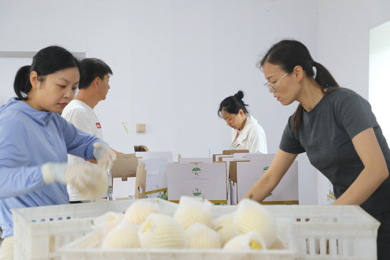 日前,三河农场生态梨园正式开园采摘,满树的翠玉梨挂满枝头,果实饱满、色泽诱人。图为工作人员正在认真挑选、精心包装,将大小均匀、品质优良的梨子装入精美的包装盒。