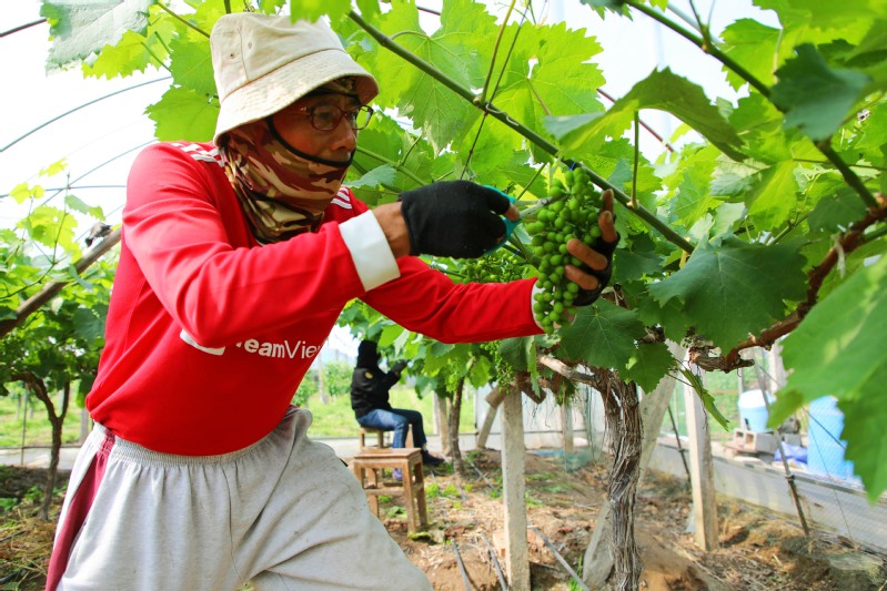江心沙:葡萄园疏果促增收